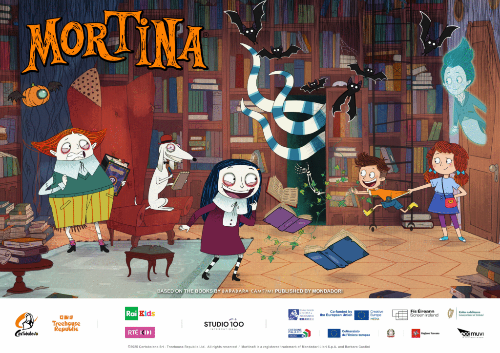 Mortina is co-financed by the European Union through the MEDIA program and produced with the support of audiovisual investment funds from Ministero della Cultura, Regione Toscana, the Government of Ireland, and Fís Éireann/Screen Ireland, with the participation of RAI KIDS and RTÉ KIDS. The animation is certified according to the EcoMuvi regulations for environmental sustainability. The International Distributor is Studio100 International GmbH.